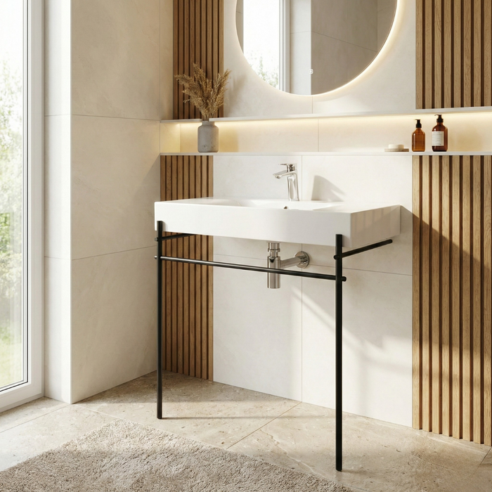 Take command of your bath décor with a contemporary console sink from Barclay Collections. Our Des line features this chic, minimalistic design fireclay basin supported on brass legs.