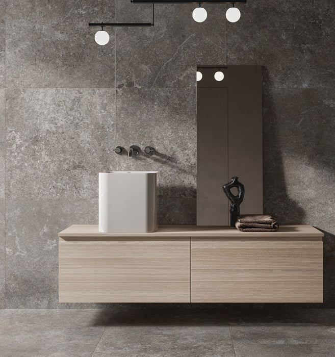 The chic RAK-Petit collection is the workk of award winning Italian designer Giuseppe Maurizio Scutella. Soft lines and swirling shapes culminate in sophisticated fixtures that lend a comforting air to your personal bath. This stylish above counter basin features fine fireclay construction with a gloss white finish.