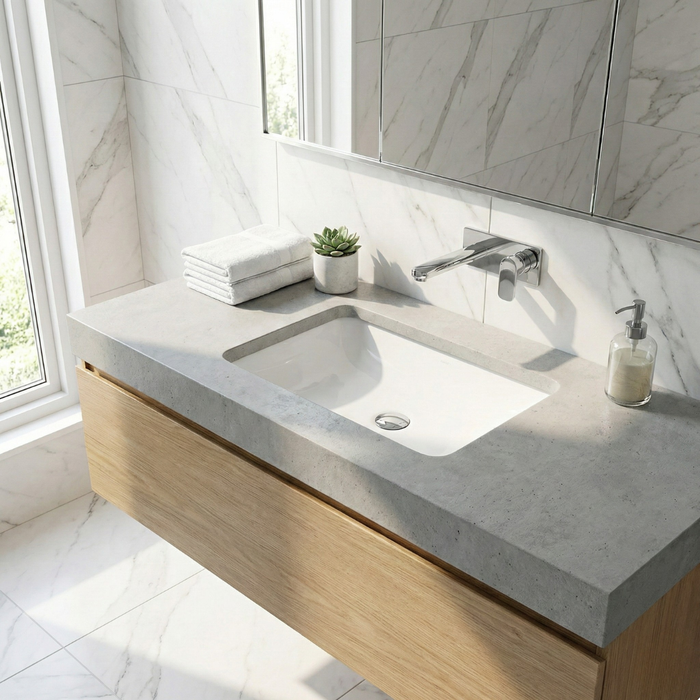 Barclay provides the designer appeal you've been searching for with the new RAK-Variant collection from Italian designers Daniel DiBiasi and Federico Sandri. These modular basins feature sleek geometric shapes with 5mm thickness in pristine vitreous china. An above-counter rim 2-3/8 inches high accents this rectangular drop-in basin.