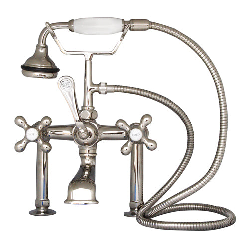 Clawfoot Tub Filler – Elephant Spout, Hand Held Shower, 6″ Elbow Mounts