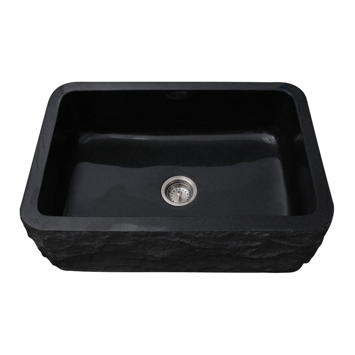 Accomplish all of your kitchen tasks with ease with this single bowl apron-front sink from Barclay. Constructed from highly durable solid granite with a natural looking chiseled front, it speaks durability. Its polished black finish evokes the best of contemporary style.