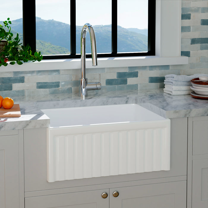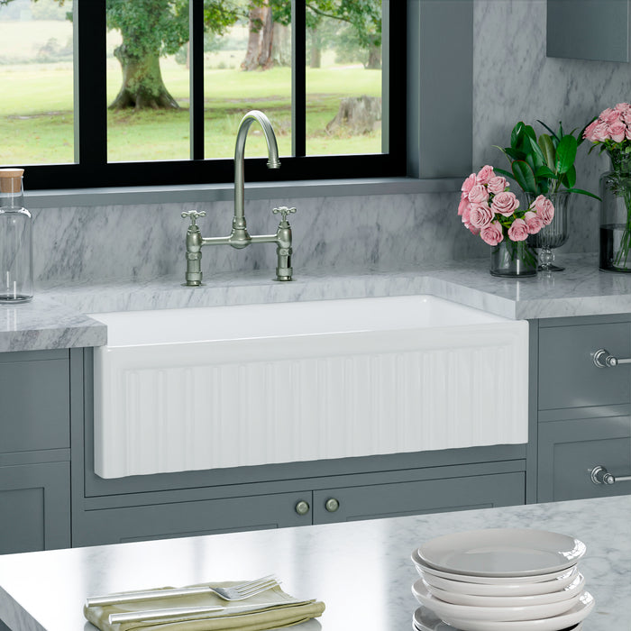 Barclay's newest addition to our impressive line of fireclay apron-front sinks boasts fine craftsmanship. Featuring a convenient center drain it is glazed on all four sides with an elegantly fluted apron front. Purchase this sink and join the many satisfied customers who always turn to Barclay for high-quality and aesthetically-pleasing bathroom fixtures.