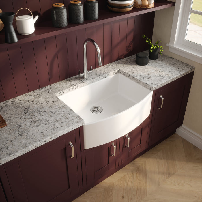 Add some charm to your kitchen with this comely apron-front sink from Barclay. The smoother surface allows for easy cleaning. Featuring a spacious single bowl design and sporting a curved design on its front, it will be both useful and decorative.
