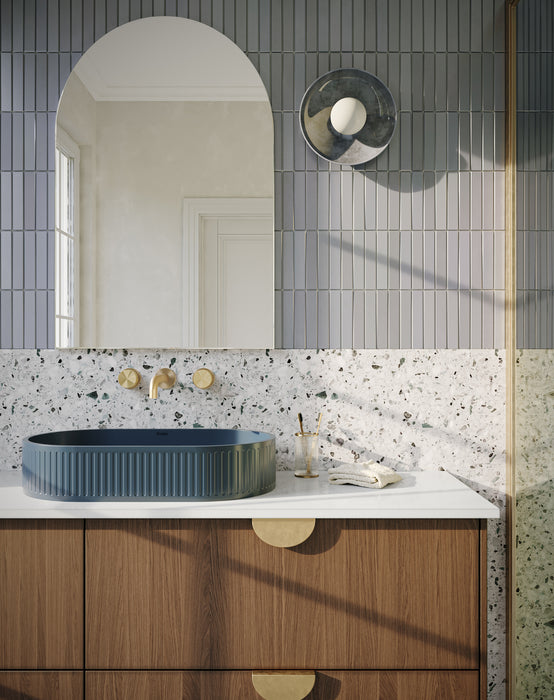 Marathi’s soft curves and fluted detailing create a smooth, elegant form that plays with light and shadow. At 23 5⁄8" wide, it offers generous comfort. Countertop installed with a color-matched drain, it suits interiors balancing form and function.