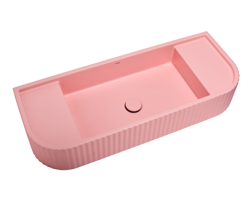 Samaria features a gently arched basin with refined fluting and a recessed vanity ledge for everyday essentials. Suitable for wall or countertop installation and available in six contemporary shades, it delivers both sculptural presence and everyday function.