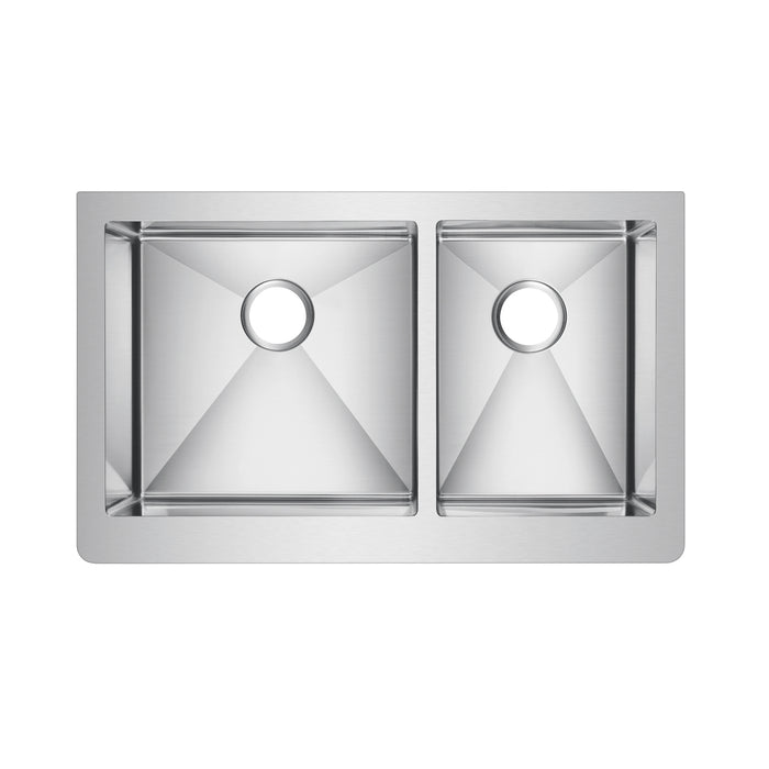 Enhance your kitchen with this double bowl apron-front sink from Barclay. It features a slightly offset double bowl design and constructed of stainless steel. Effortlessly, it will enhance your culinary tasks while bringing a clean and professional look to your kitchen.