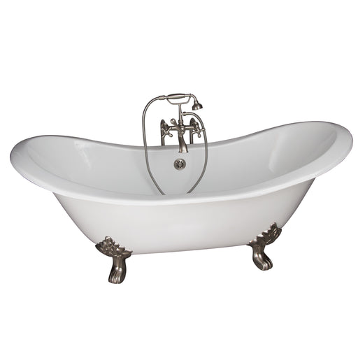 Luxuriate in this spacious cast iron double slipper tub with lion paw feet. Elegant tub filler features elephant spout and hand shower. All necessa...