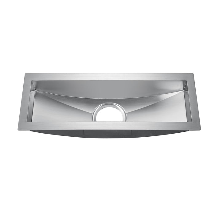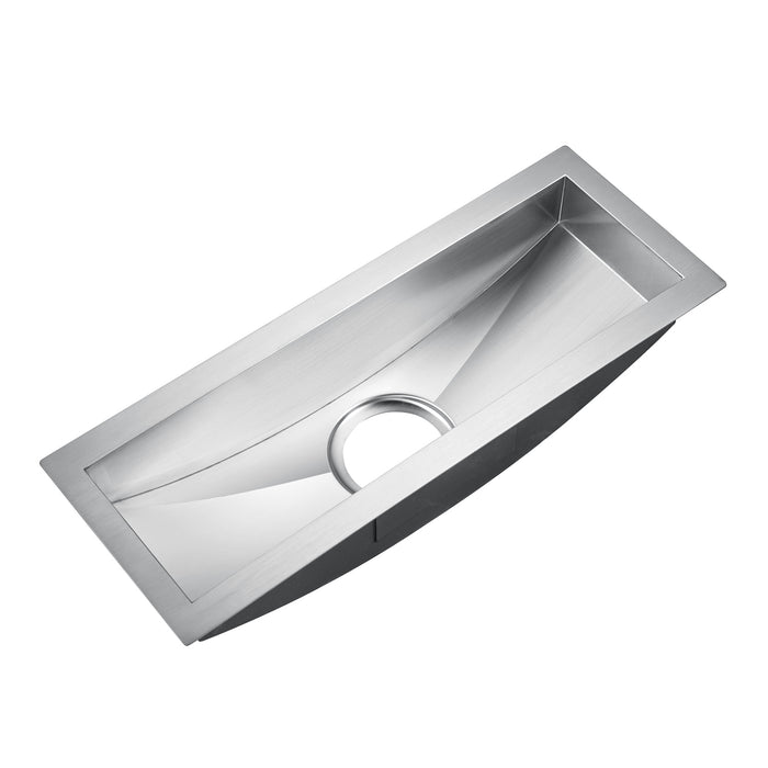 This unique bar sink will be a truly unique addition to your home with its elongated shape and curved bottom. To ensure a quality and luxurious use, sound insulating coating and pads are installed on the sides and bottom of the inside of the sink. Constructed from the most durable 16 gauge, 304 grade stainless steel, it is sure to provide you with many years of dependable use.