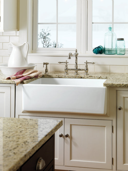 This charming apron-front sink is finished on all four sides making it perfect for exposed or island applications. Fine fire clay is durable and easy care. With this purchase you become a part of Barclay’s long tradition of providing only the highest quality kitchen sinks.