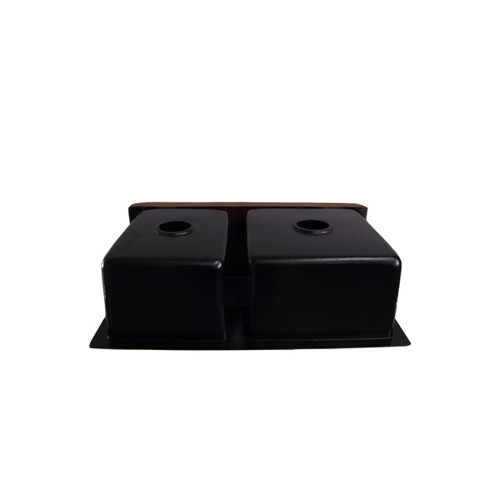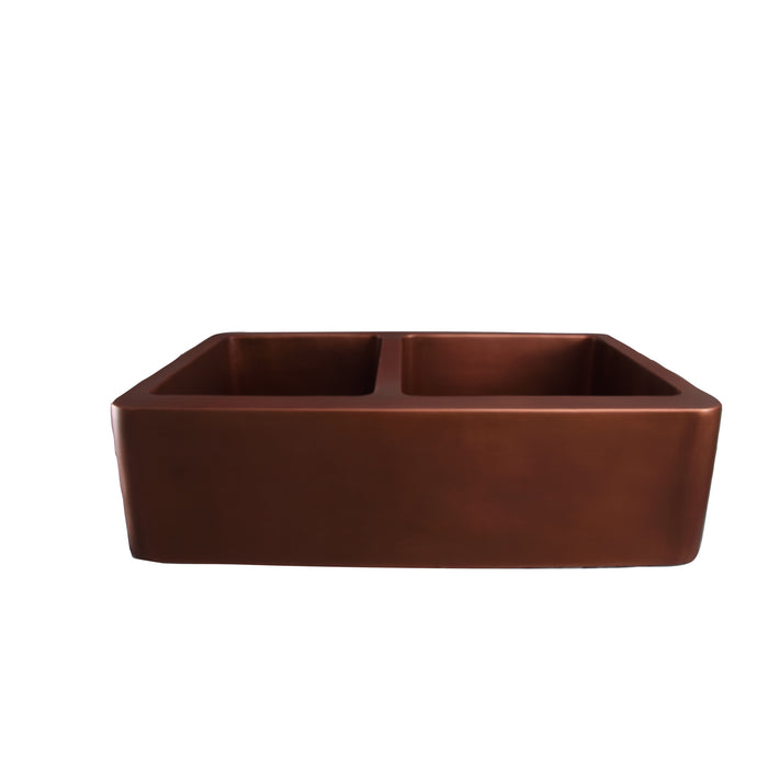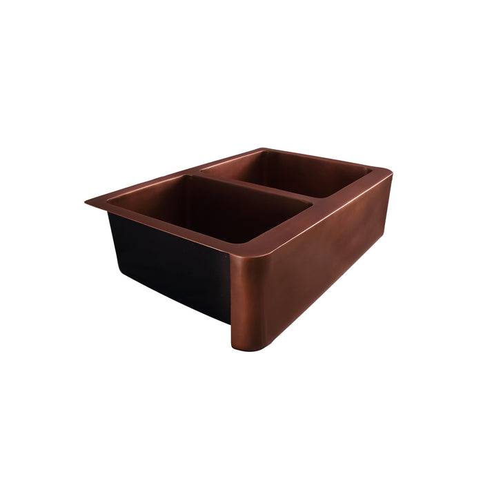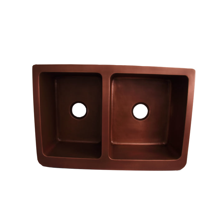 This copper apron-front sink is ideal for food preparation and clean up jobs with its double bowl design and durable construction. Its antique copper patina is applied using an authentic French hot process which adds elegance and luxury to the whole ensemble. The luxury finish is hand-polished, providing exquisite quality.