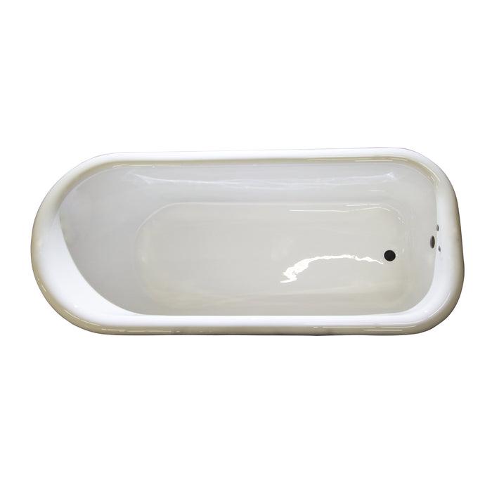 Our Andover acrylic tub is a classic roll top design featuring a rough exterior finish. The exterior is a snowy white accented with ball and claw feet.
