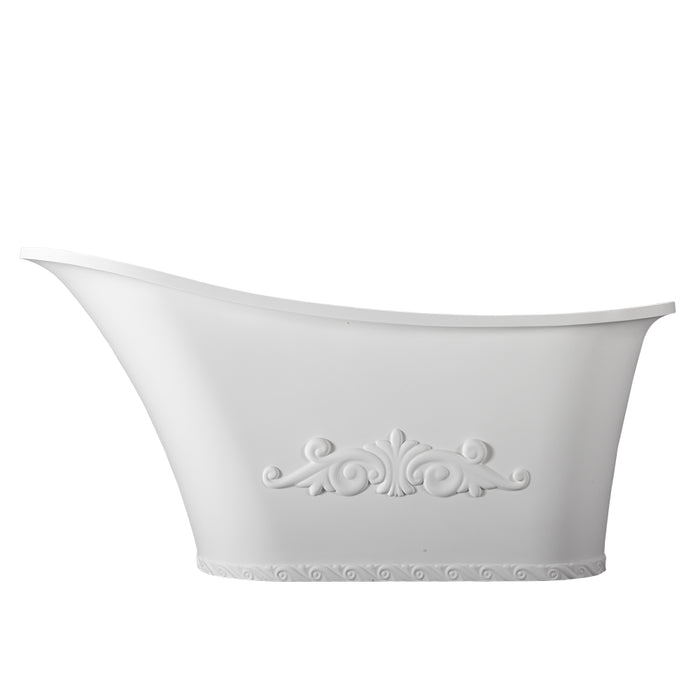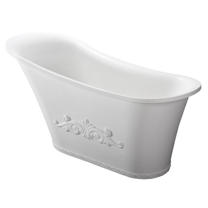Ornamental accents on both sides of our Ayanna resin slipper tub ensure a unique addition to your decor. Freestanding design offers many options for your floor plan. Poly-resin construction features a lovely, easy-care finish.