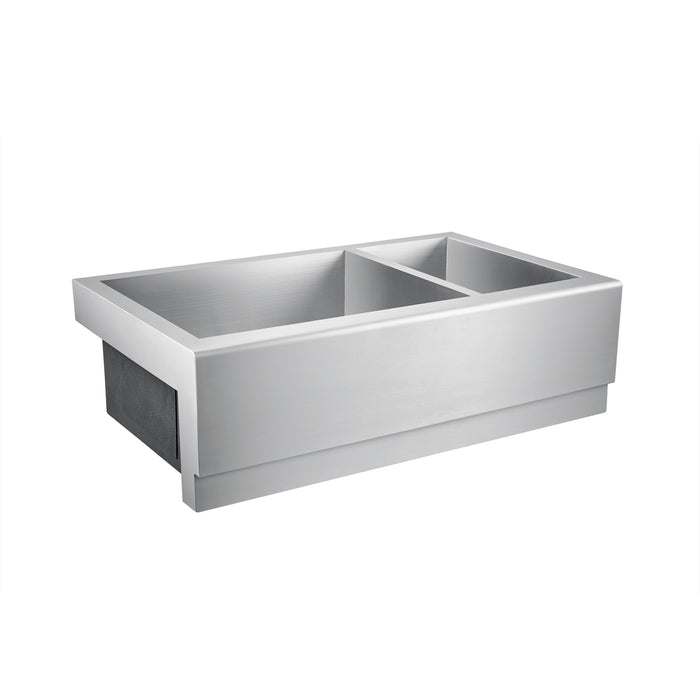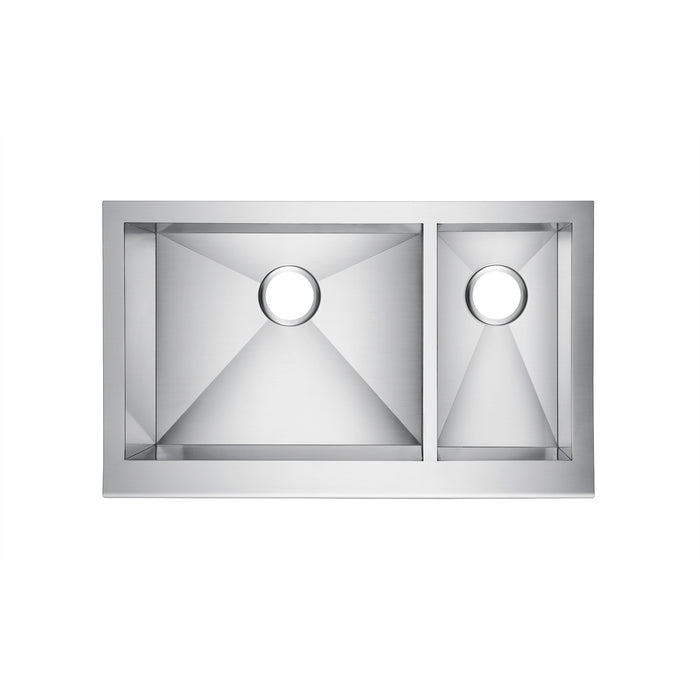 Combining a traditional ideal with contemporary style, this apron-front sink will fit beautifully into a traditional or modern kitchen. To ensure quality and luxury with use, sound insulating coating and pads are installed on the sides and bottom of the inside of the sink. Featuring a larger well perfect for dishes and a smaller one ideally suited to food preparation, it is sure to please.