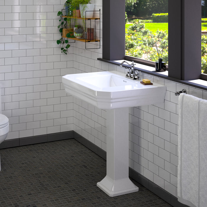 Complete your traditional bathroom in a breathtaking way with the Corbin Pedestal Lavatory from Barclay. Its timelessly decorated rectangular design, large and comfortable interior dimensions, and spacious tap deck combine to produce a memorable and mesmerizing effect. You can furthermore rest assured that Barclay’s high level of careful and quality craftsmanship ensure that this stunning sink will stand the test of time, gracing your home for many years to come.