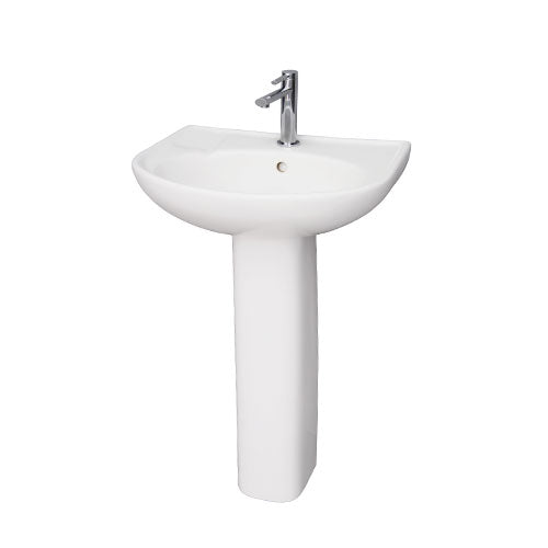 Cynthia, from Barclay, is a simple understated pedestal lavatory that fits easily into any décor. A small rim encases the entire basin to reduce drips. The basin also features a built in soap dish with drainage.