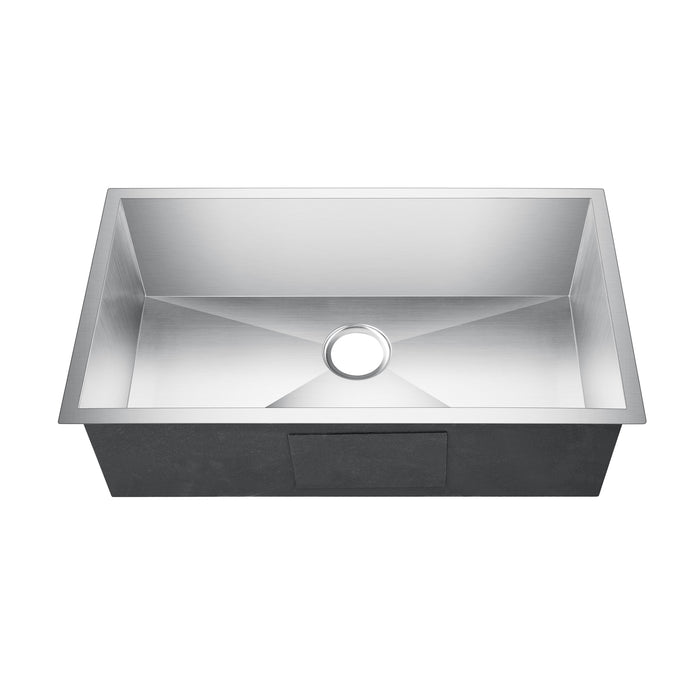 This amply sized kitchen sink will bring a professional look to your kitchen. To ensure quality and luxury with use, sound insulating coating and pads are installed on the sides and bottom of the inside of the sink. Featuring easy to clean zero radius corners, solid 16-gauge stainless steel construction, and sporting an attractive matte finish, it will be a welcome addition to your kitchen ensemble.