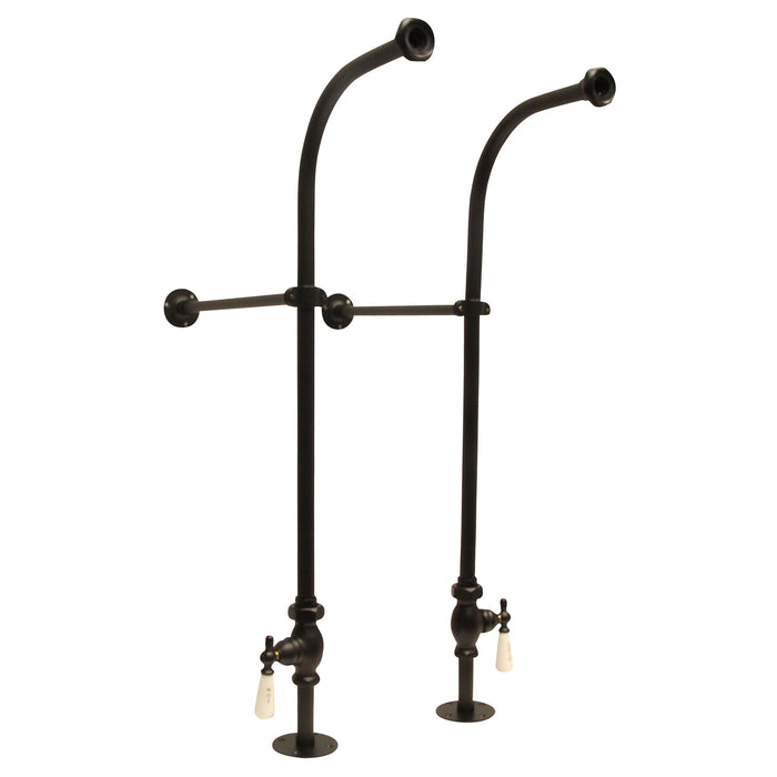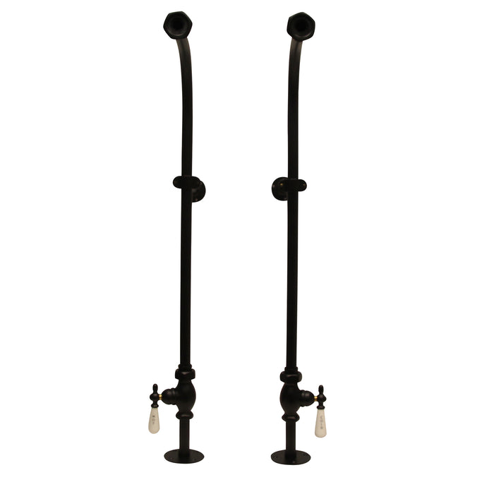 These exposed freestanding bath supplies with porcelain lever handle stops curve gracefully over your Claw foot tub.