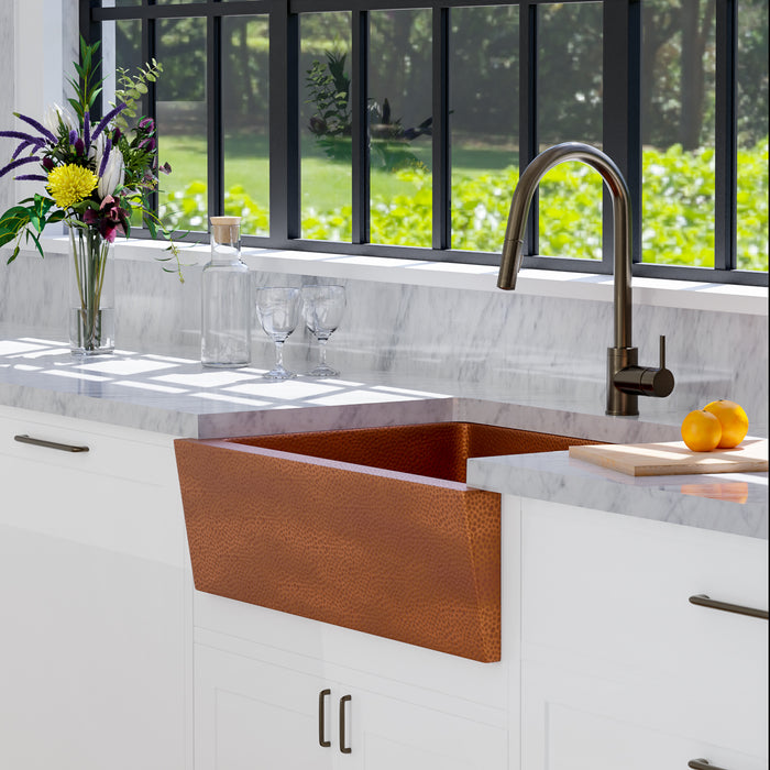 With its spacious single well design and hammered finish, this sink will be a welcomed addition to any kitchen. Its antique copper patina finish is applied using an authentic French hot process which lends the entire ensemble distinguished elegance. The hammered finish adds a fashion-forward design to your home.