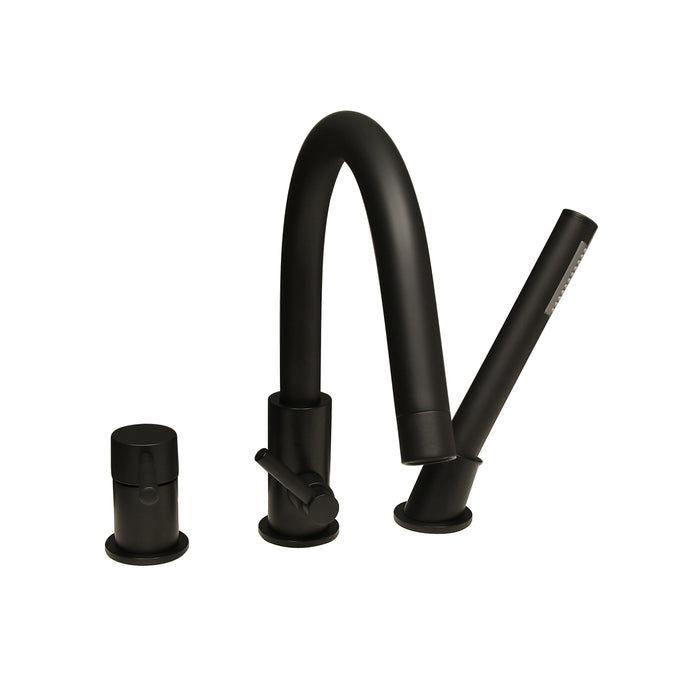 This stylish deck-mount roman tub faucet features a modern design with sleek, clean lines with a single handle and handshower. With deck mounting, you have quick and easy access to tub controls. This captivating filler adds elegance and functionality to your bath.