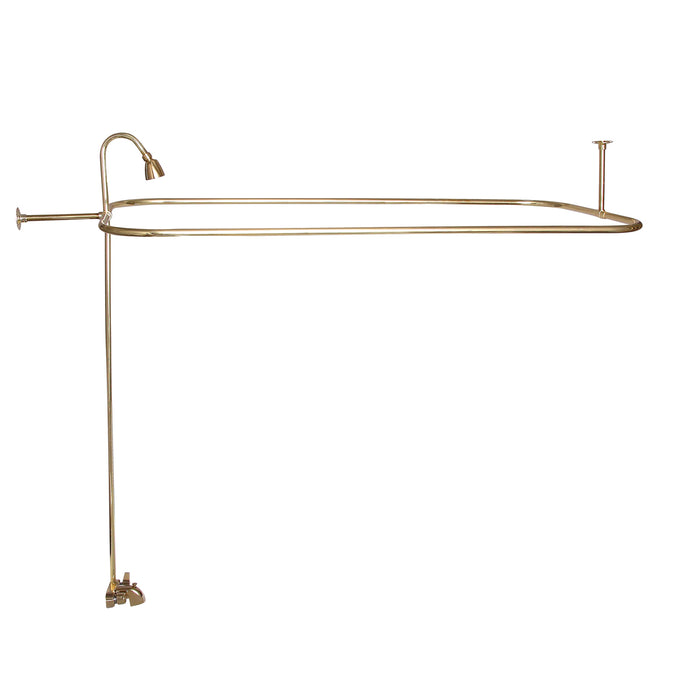 This simple rectangular unit is comprised of a tub filler, riser showerhead and ceiling and wall supports.