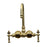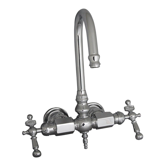 A different look is achieved with this uniquely shaped faucet body and intricately designed lever handles.